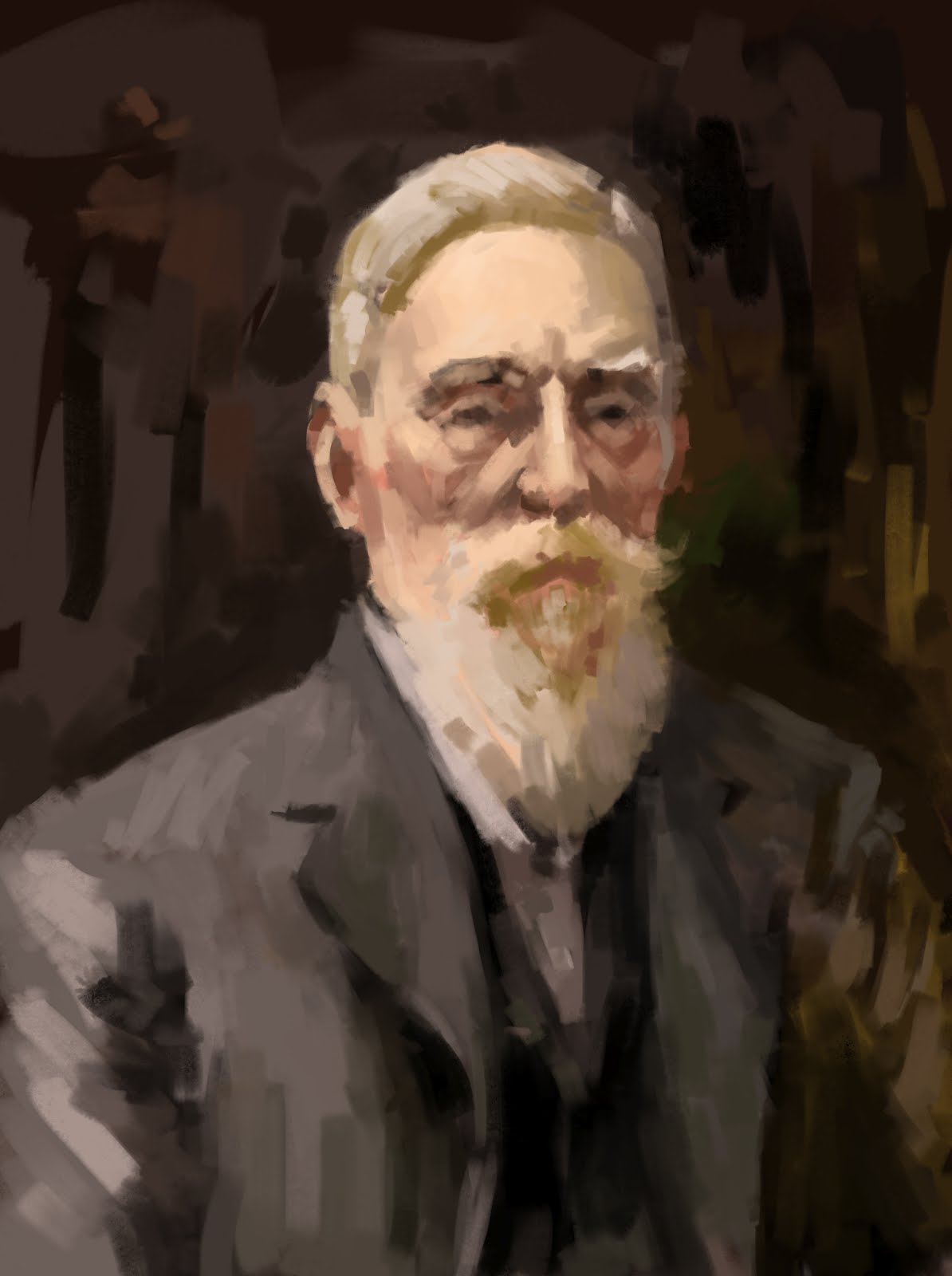 I really like the feel to oils, trying to mimic that feel by using a pretty rough and angled brush with really sensitive settings. So every stroke comes through, this one is from an old Swedish painter I think.. lost his name sorry