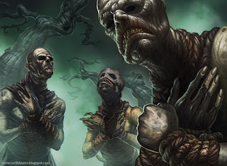 Creature of the swamp concept “Scavenger”. Generations of unhealthy environment it somehow developed into this being. Some human like features can be seen in some of them. Solely relies on its senses as it is totally blind. Scavenger and pretty dangerous in close combat.